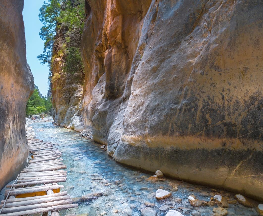 Early in the morning, you will be picked up from designated spots around Chania via a luxurious bus and reach the starting point of your tour in Omalos Plateau around 7am. The panoramic view of the gorge from the plateau is a photophile's delight, so after short stop for pictures, you will begin descending the 600 wooden steps that will take you inside the Samaria gorge. Shadowed by the adjacent White Mountains and with plenty of drinking water to be found along the way in many natural springs, this self-paced hike will create unique memories for every traveler. Behind your group, there will always be a hiking escort to ensure everyone's safety and provide assistance if needed.